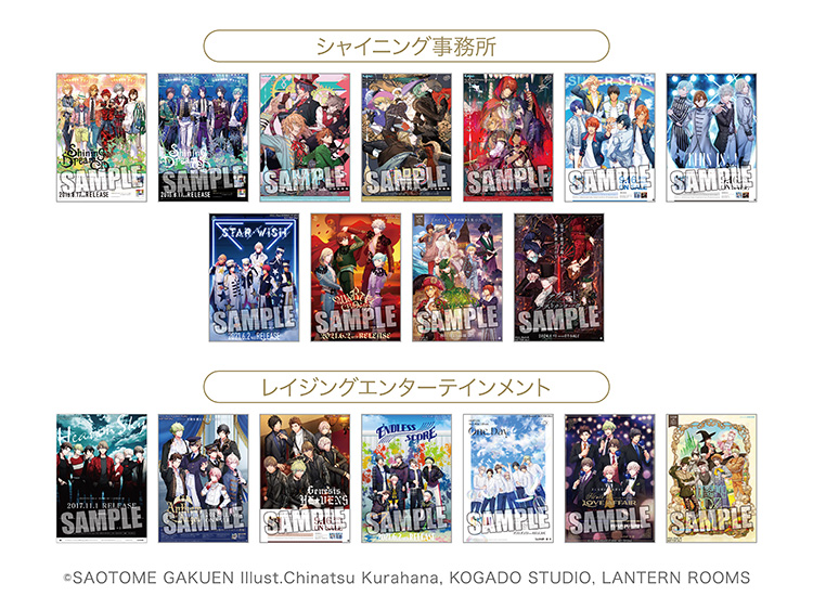 シャイニング事務所…6枚/レイジングエンターテインメント…4枚 など - ※②の対象商品をご購入の方はそれぞれのCDに該当した絵柄のポスターか、③の特典のいずれかをお選びいただけます。